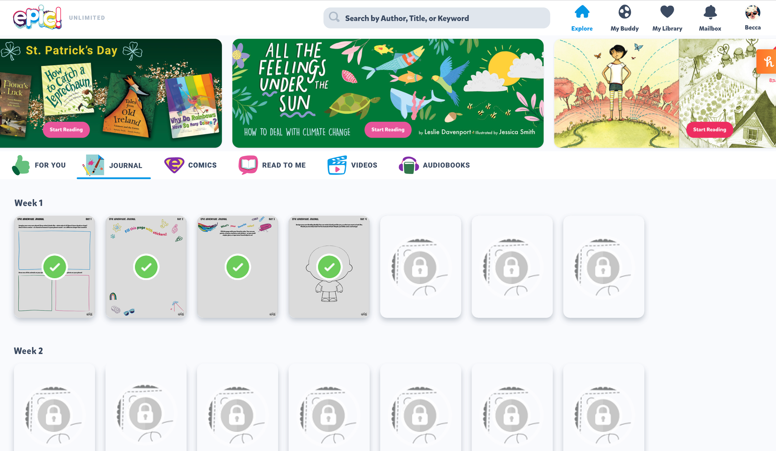 The Epic for Kids marketing team was tasked with creating a campaign to keep kids reading and beat the “summer slide” while out of school. We chose the theme “Go Anywhere with a book this summer.” The campaign centered around 6 weeks of curated book lists featuring engaging themes. I worked closely with my team to create visual assets for various marketing needs. I also did most of the design for the responsive landing page.